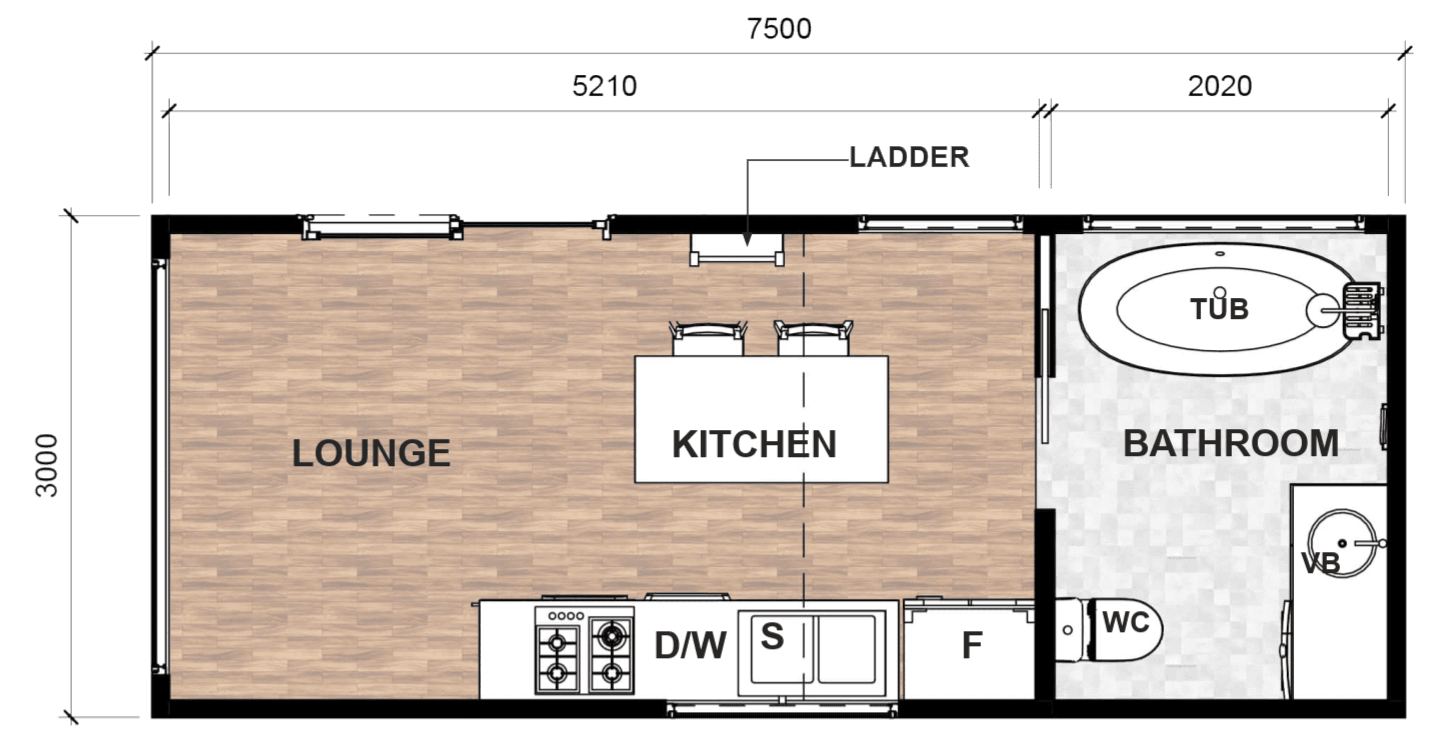 Candlewick is intimate and inviting, designed for couples or charming short stays. A cozy loft bedroom and the luxury of a full bathtub make this model perfect for romantic hideaways or Airbnb retreats. Warm, compact, and full of character, this design is all about comfort, connection, and memorable moments. Like all our tiny homes the Candlewick also includes high-end specs as standard: brass fittings and tapware, rich timber internal cladding throughout, architectural steel cladding paired with Western Red Cedar on the exterior, and a handcrafted leadlight window that makes each build truly one of a kind. Thoughtful touches like a beautiful bathtub, two Velux skylights above the loft for stargazing at bedtime, soaring cathedral ceilings, and expansive windows that maximise natural light ensure the Candlewick is not only beautiful but a luxurious, inspiring space to call home.
