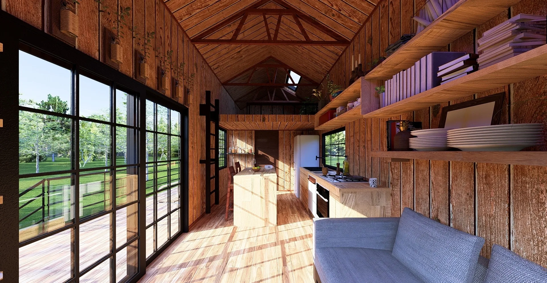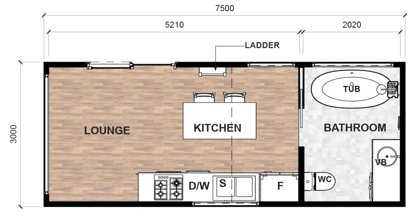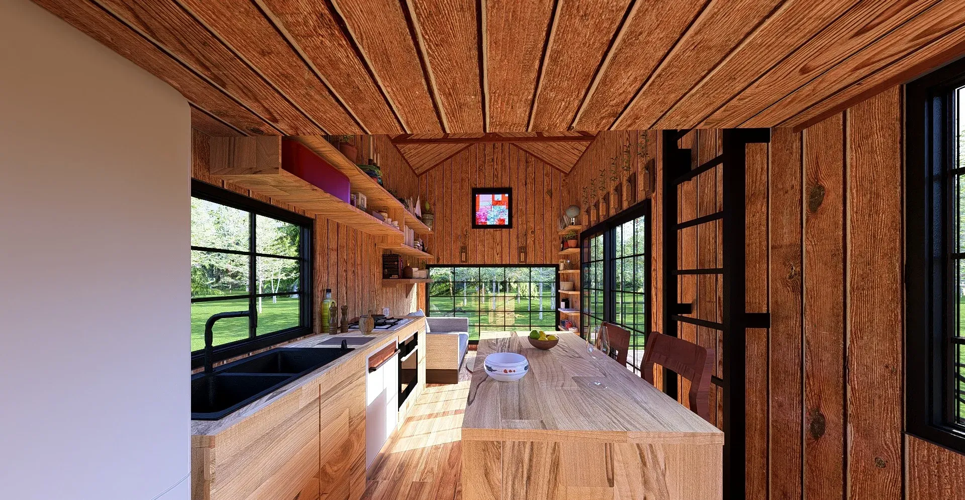 Candlewick is intimate and inviting, designed for couples or charming short stays. A cozy loft bedroom and the luxury of a full bathtub make this model perfect for romantic hideaways or Airbnb retreats. Warm, compact, and full of character, this design is all about comfort, connection, and memorable moments. Like all our tiny homes the Candlewick also includes high-end specs as standard: brass fittings and tapware, rich timber internal cladding throughout, architectural steel cladding paired with Western Red Cedar on the exterior, and a handcrafted leadlight window that makes each build truly one of a kind. Thoughtful touches like a beautiful bathtub, two Velux skylights above the loft for stargazing at bedtime, soaring cathedral ceilings, and expansive windows that maximise natural light ensure the Candlewick is not only beautiful but a luxurious, inspiring space to call home.