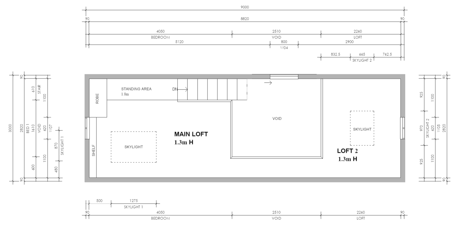 Dual loft design sleeps 4 people, With the Master loft including built in robes, Shelves & standing area. While the secondary loft accommodates with enough space for 2 single beds.